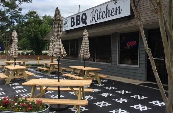 Dunc’s BBQ received a well-planned exterior update that balances function with curb appeal. We removed the old roof overhang and framed a fresh new face for the building, then installed durable Hardie siding paired with composite decking accents to add texture and warmth. The brick was freshly painted to complement the new materials, and a metal awning was added to provide shade while boosting the overall style.